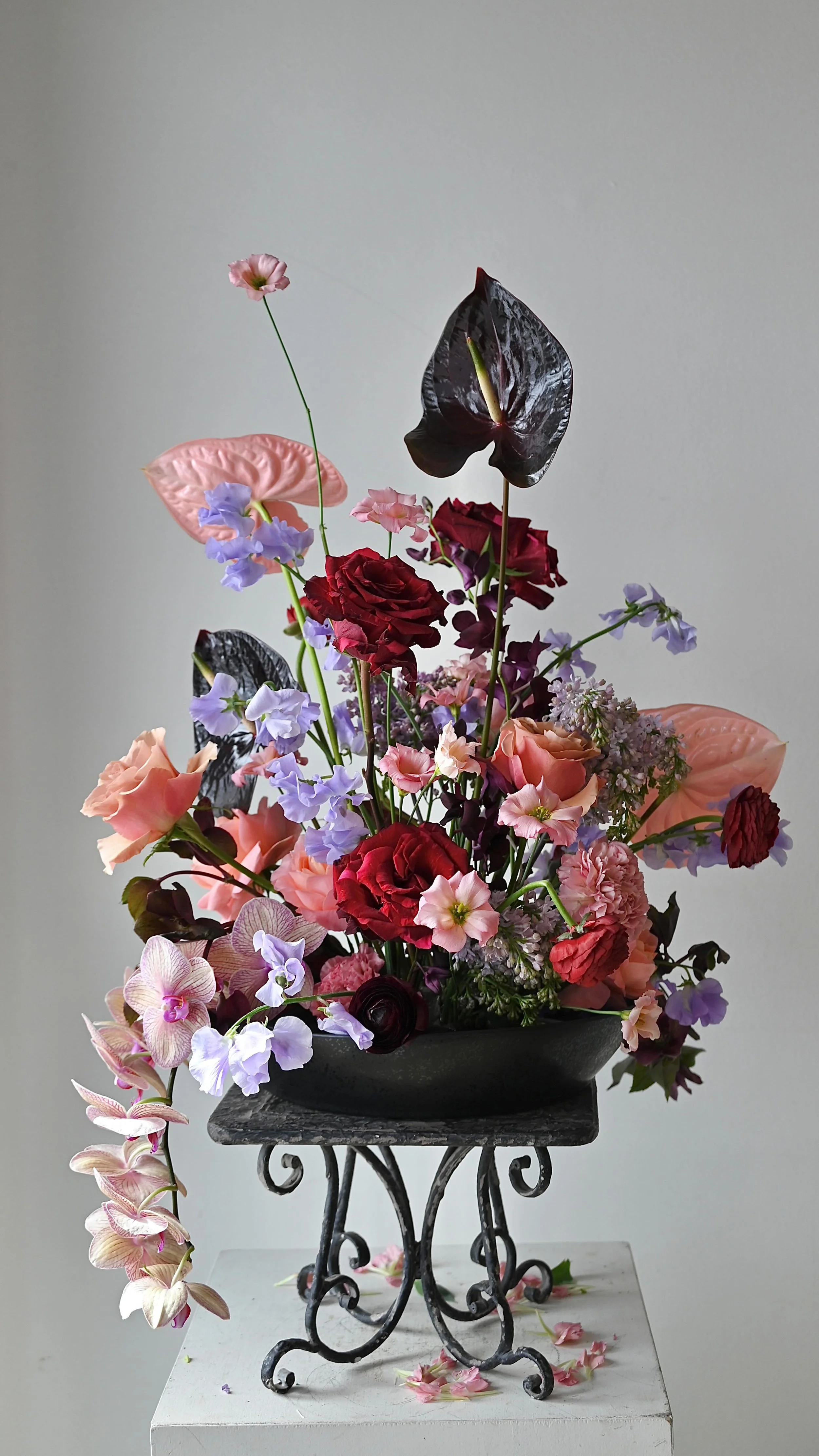 Featured Florals / Greenery: Dahlias, Garden Roses, Lisianthus, Burning Bush